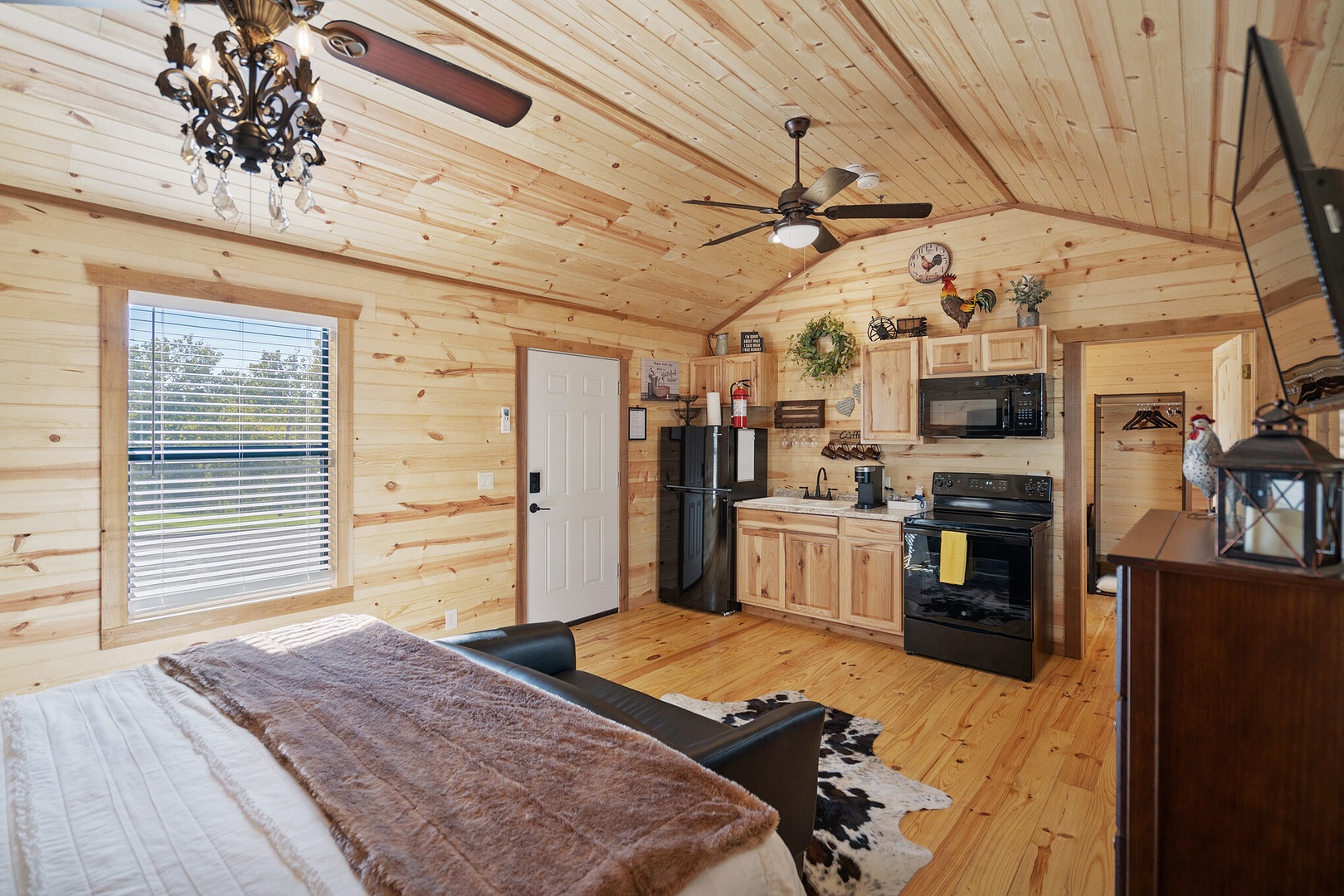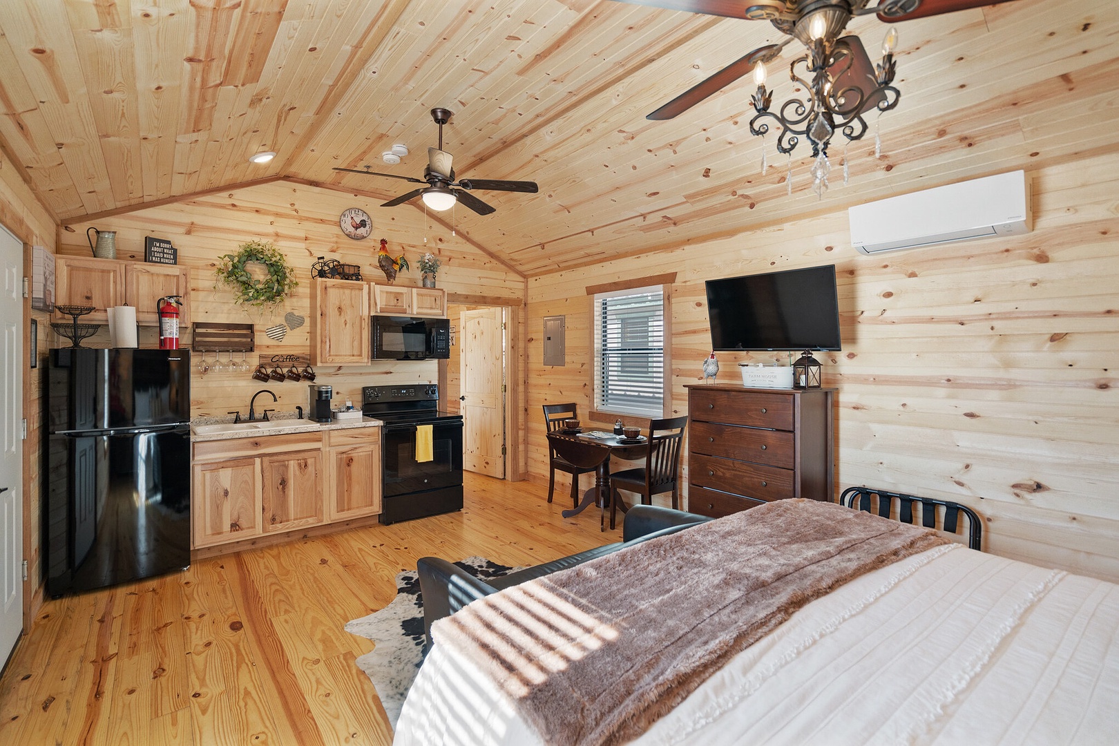 This stunning casita has one gorgeous bedroom and one bathroom. This beautiful Texas home comes with a spacious kitchenette with all the appliances and dining space you need making it the best place for you and you to relax after a long day of shopping!