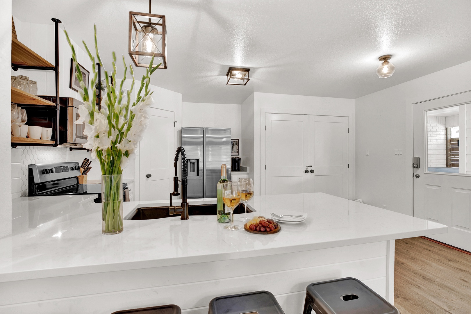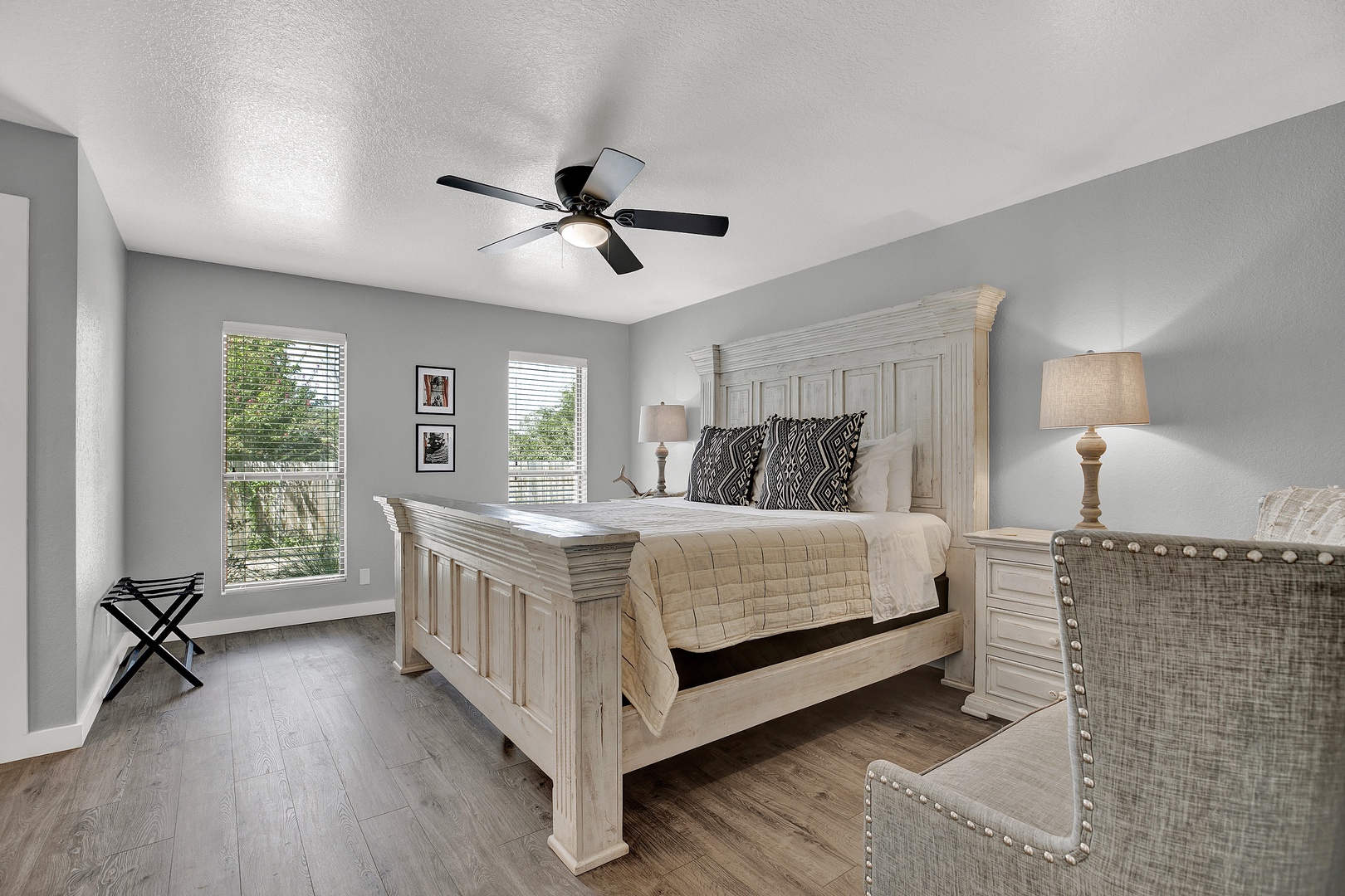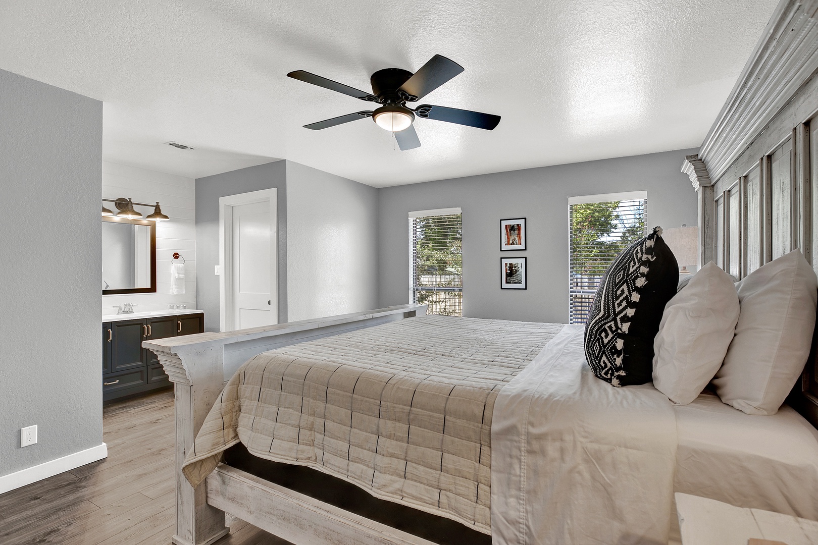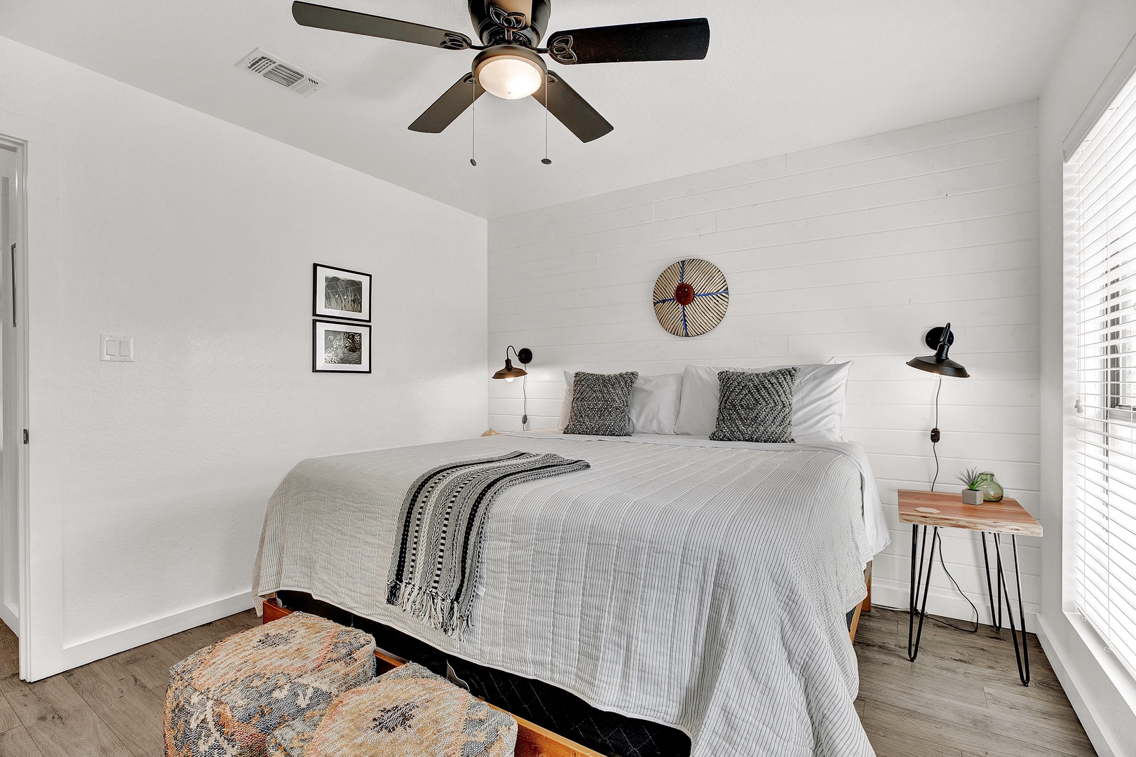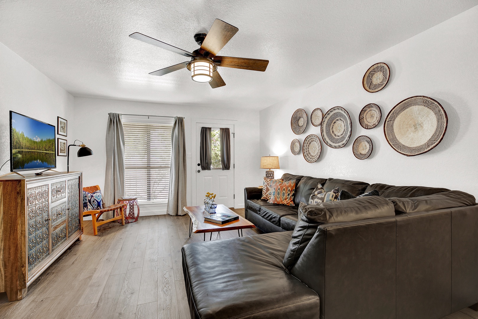 Welcome to the Wanderlust! This gorgeous four-plex home is a Fredericksburg luxury destination that has been decorated with an eclectic mix of photography and artifacts from Africa and Central Asia. This beautiful home is just a few minutes away from Main Street, making it the perfect location to enjoy the lively and historic downtown Fredericksburg! This modern home is located in a stunning property with a beautiful shared outdoor courtyard.
