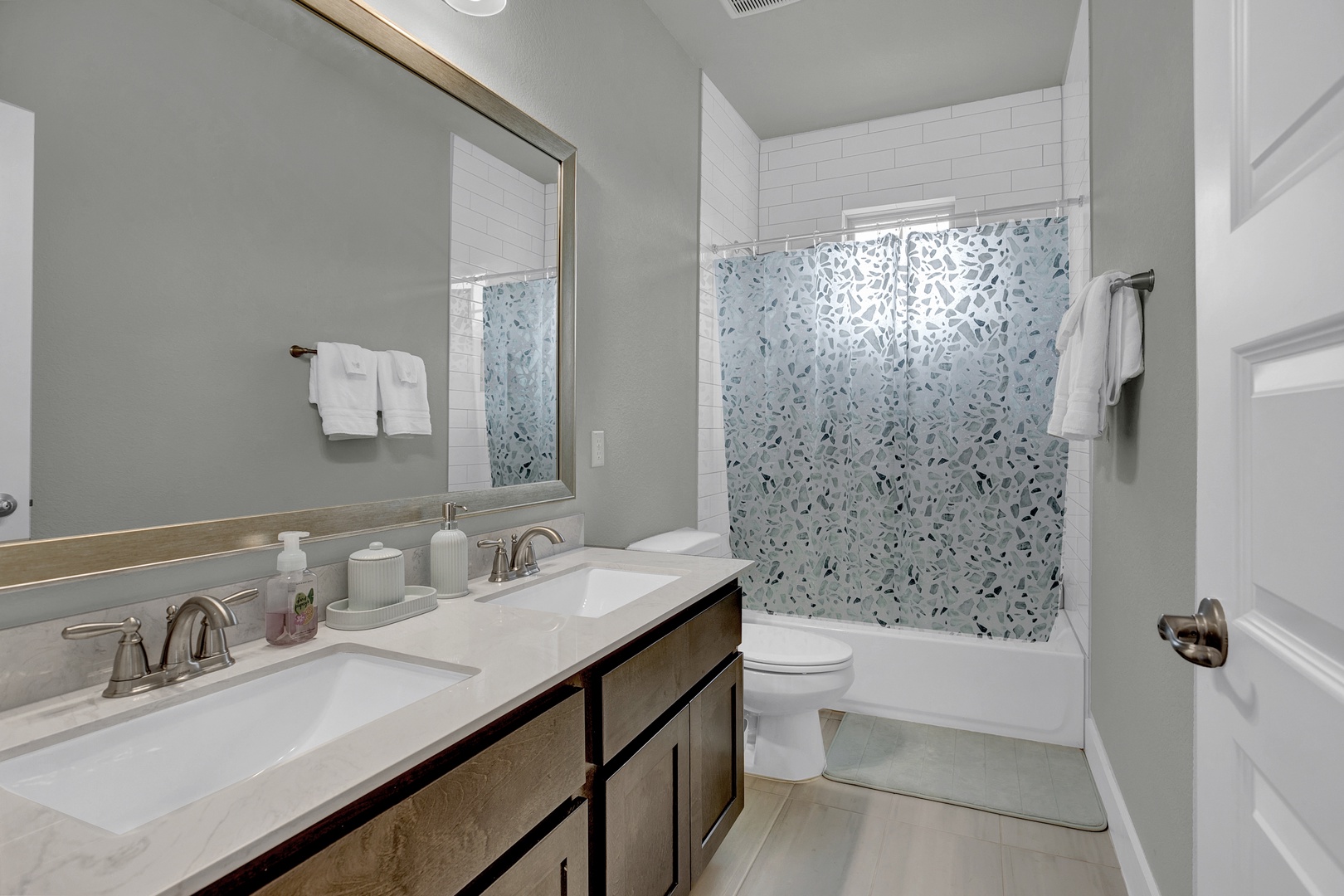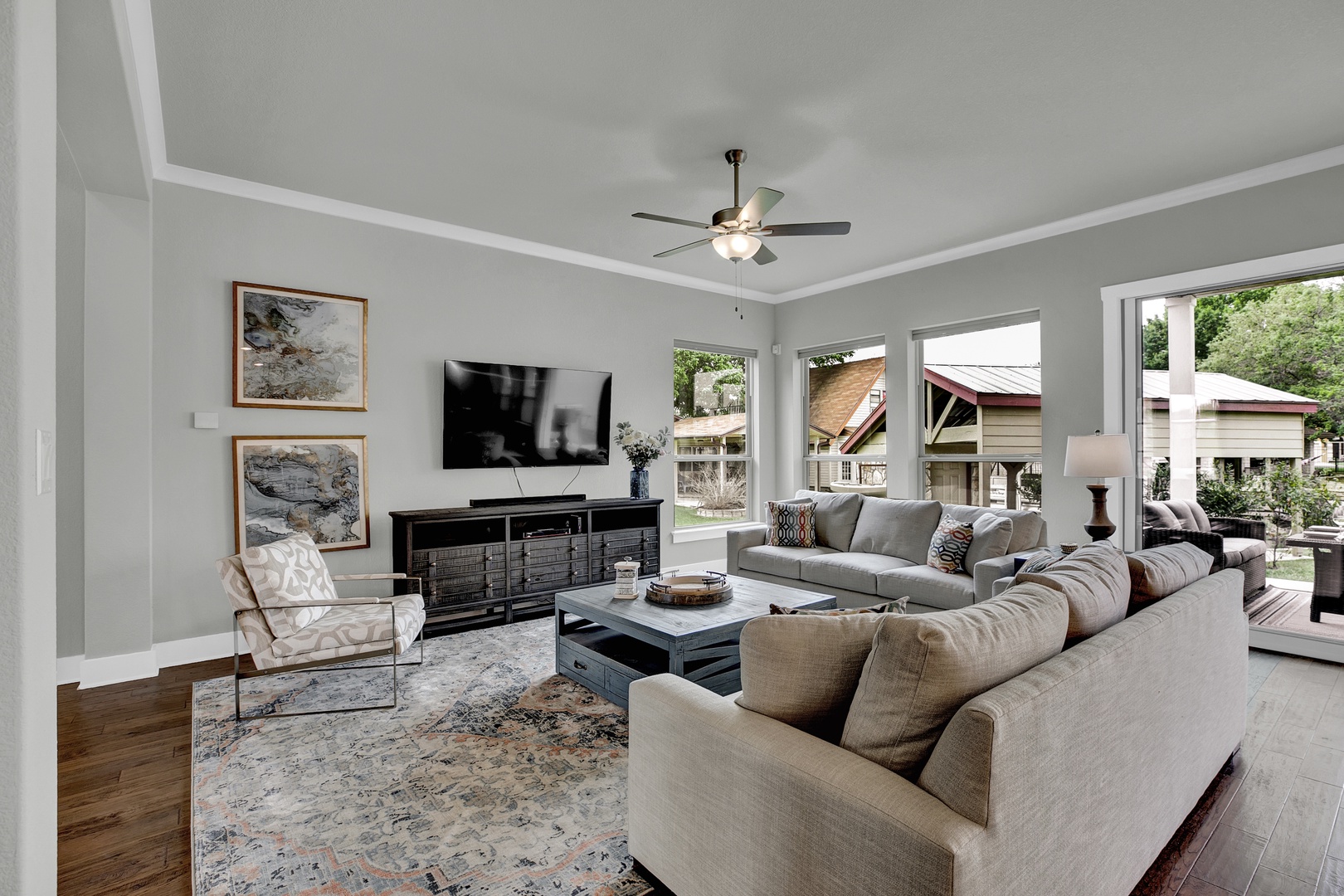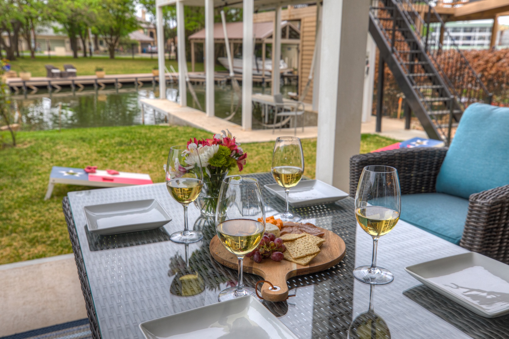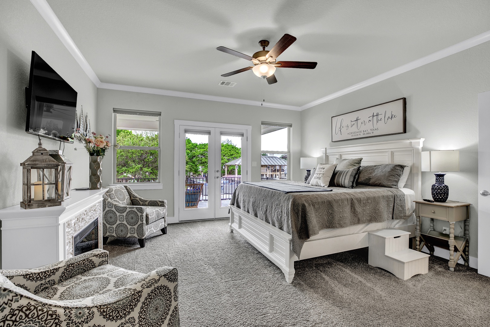 This luxurious and modern lake view home boasts all the resort-style amenities that are ideal for families, small groups, and lake-going weekend warriors! This stunning home is located in the beautiful Horseshoe Bay area. It is a brand new home that proves to be an entertainer’s dream with three outdoor patios/decks, an open concept living area downstairs, and ample bedroom spaces upstairs.