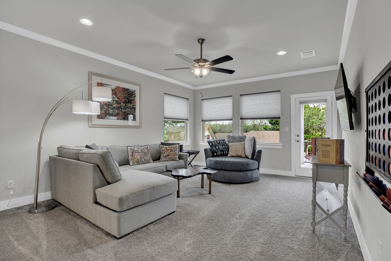 The home has three bedrooms and two luxurious bathrooms sleeping eight comfortably. The spacious bedrooms offer the latest in mattresses and bedding, offering optimal comfort and a comfy night's sleep, especially after a long day exploring and enjoying the lake. In addition to the three bedrooms upstairs, there is a game room perfect for kids and teenagers! In the game room, you’ll find a large screen tv, an assortment of games, and a comfortable sofa that pulls out to sleep two.